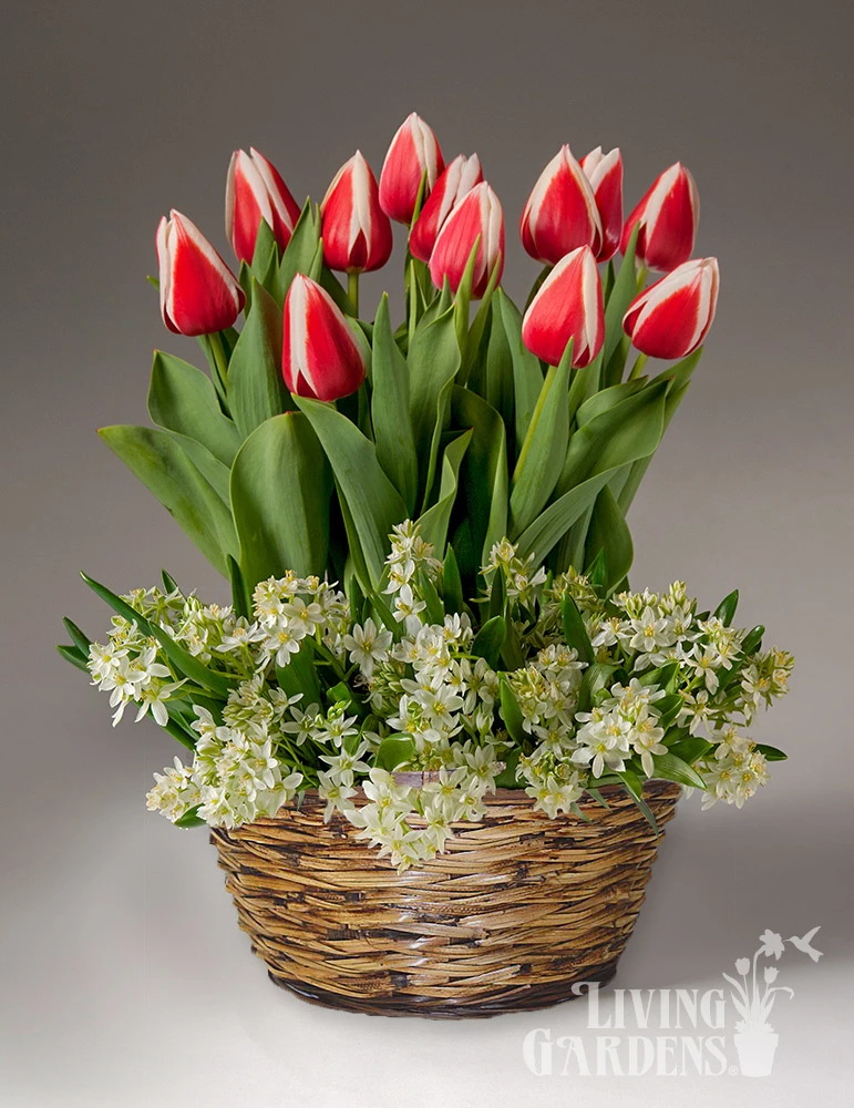 We can’t think of a better way to show your love & adoration than by sending a potted bulb garden. You will be sending that person you adore a beautiful 8″ wicker basket filled with 12 Full House Tulips and 8 Star of Bethlehem bulbs.